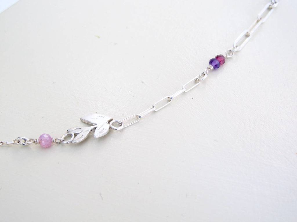 Silver Leaf & Twig Sapphire Bead Link Bracelet